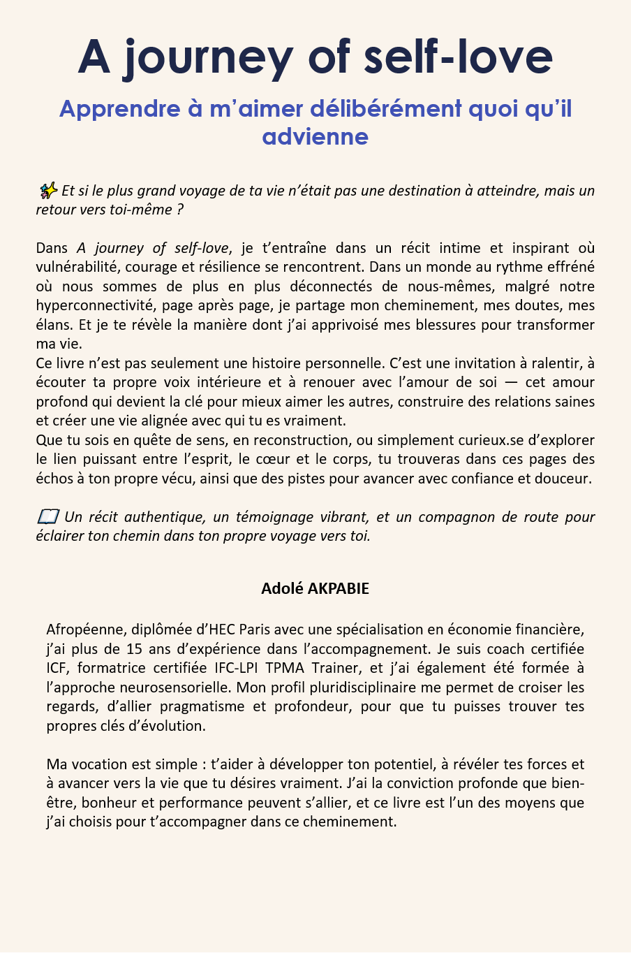 Dans A journey of self-love, je partage avec toi mon parcours, mes épreuves, comment je les ai surmontées et les leçons que j'en ai tirées.
