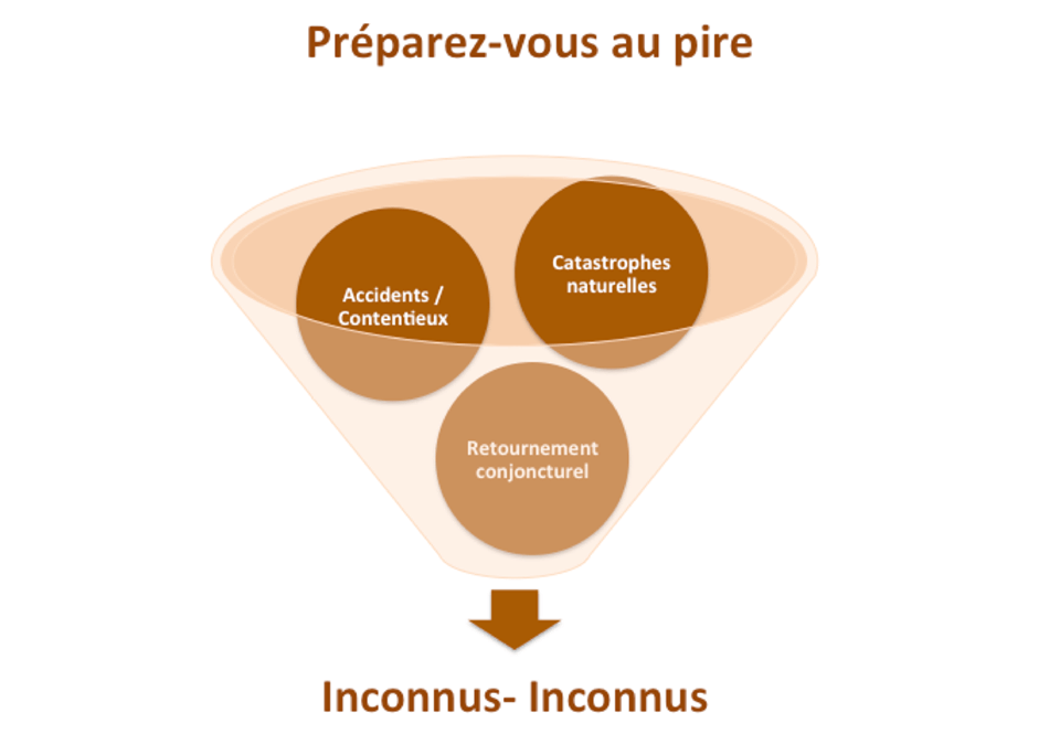 Les II (Inconnus – Inconnus) sont les coûts inattendus qui se présenteront à une organisation au cours d'une année donnée. Ces coûts extraordinaires incluent habituellement des déchainements de la nature, comme des tremblements de terre, des ouragans, des inondations, des tornades, etc. Ils peuvent aussi consister en des contingences imprévues comme des procès, des émeutes, des vandalismes, etc. La plupart des entreprises ne budgétisent pas les II parce qu'il est difficile de factoriser quelque chose que personne ne peut prédire dans le présent. Cependant, s’ils se produisent, l'organisation disposera-t-elle des fonds nécessaires pour supporter leurs coûts ? Il n'existe pas de formule réelle et universelle pour calculer les II. Les quelques dirigeants qui donnent la priorité à cet élément de ligne budgétaire ont des approches qui diffèrent considérablement quand il s'agit de processus et de formules. D'un point de vue stratégique, nous proposerons la fixation des II à 10% du volume des ventes de l'année précédente. Extrait de l’Ouvrage « Le Top Manager » écrit par Madou Sylla et traduit par Adolé Akpabie Retrouvez-nous sur Facebook : www.facebook.com/LeTopManager/ Pour en savoir plus sur l'auteur : http://madousylla.com/ Pour acheter le livre sur Amazon : bit.ly/LeTopManager1 Pour acheter le livre à Dakar : L'Harmattan Sénégal, Réseau 4 Vents Mermoz, Mona Lisa Ngor, Point Presse Score Sahm